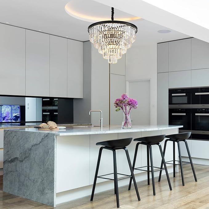23.23\" Black Crystal Chandelier 12-Light Modern Crystal Pendant Ceiling Light Fixture 5-Tier Luxury K9 Crystal Chandeliers,for Dining Room Kitchen Island Living Room Bedroom