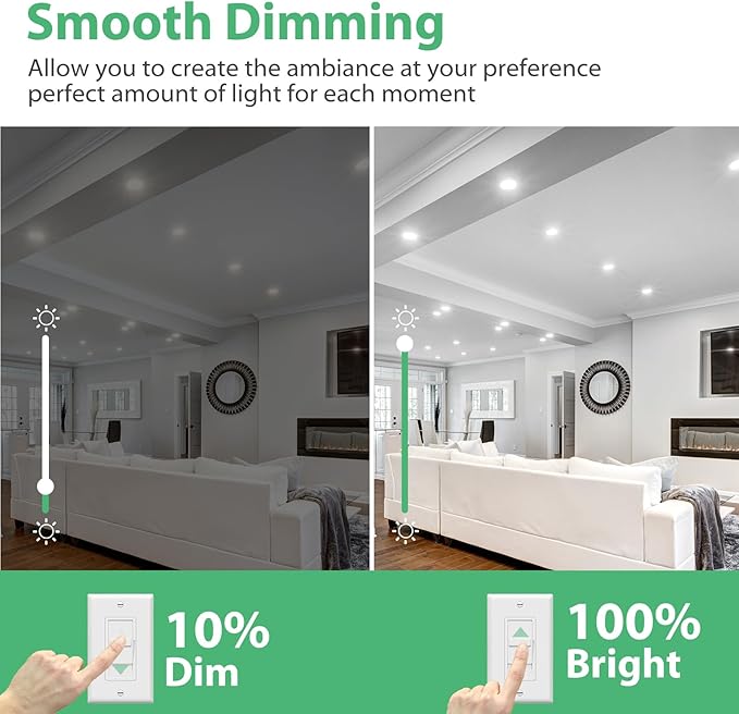 • 【Dimmable Flood Lights】Recessed LED dimmable light bulbs are compatible with most LED dimmers for smooth quiet dimming ranging from 100% to 10%. Allow to create ambiance at your preference, no buzzing, flicker-free, comfortable light maximum eye comfort.