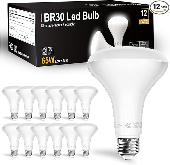 Superior Brightness: Harness the power of advanced LED technology with our BR30 LED flood lights indoor, emitting a brilliant 800 Lumens of 5000 K daylight glow. Boasting a high CRI of 80+ and a wide 120-degree lighting angle, these dimmable LED flood light bulbs provide vivid, true-to-life colors.Perfectly suited for recessed cans, wall washes, and other applications requiring bright,efficient lighting,these bulbs are an essential addition to any commercial or residential space.