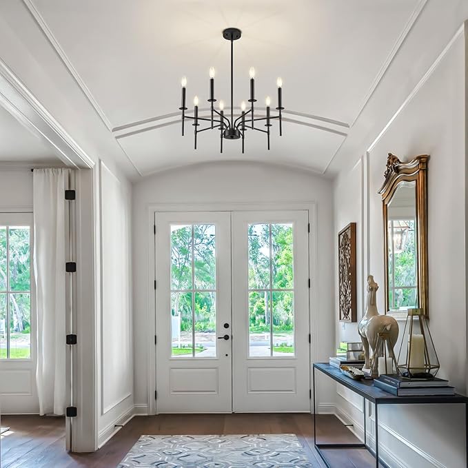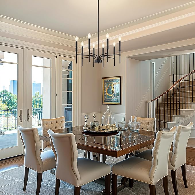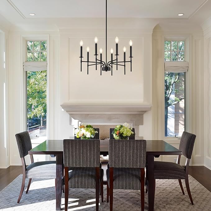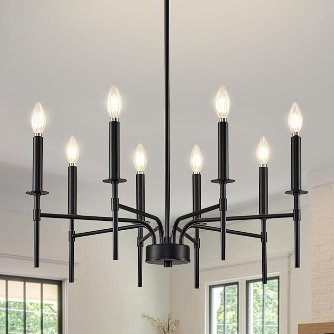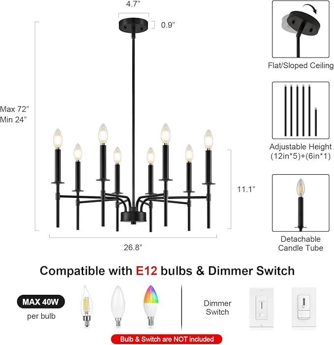 • Dimmable Chandelier: With 8 pcs E12 candlestick holders(compatiable with incandescent, LED, CFL, and halogen E12 bulbs) and 10% to 100% dimming capability (Bulbs and dimmer are not included), this black modern farmhouse chandelier allows you to create the lighting ambiance for every moment